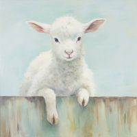 Een kleurrijk digitaal schilderij van een schattig lammetje. Het werk geeft een dromerige en klassieke uitstraling aan uw interieur!