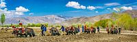 Koop dit landschapskunstwerk Landarbeid met gebruik van jaks, Tibet. Panorama van Rietje Bulthuis op canvas, aluminium dibond, (ingelijste) fotoprint, behang en ArtFrame, op maat geprint in Fine-Art kwaliteit.