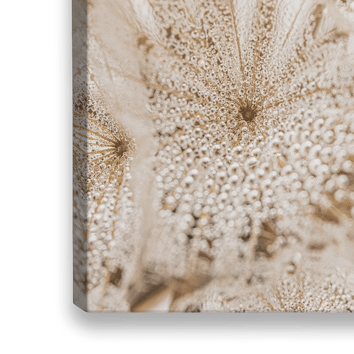 Koop dit abstracte kunstwerk Landelijk: Waterdruppeltjes op de pluisjes van Marjolijn van den Berg op canvas, aluminium dibond, (ingelijste) fotoprint, behang en ArtFrame, op maat geprint in Fine-Art kwaliteit.