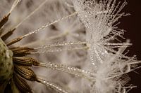 Koop dit bloemen kunstwerk Landelijk sfeertje: Druppeltjes schitteren in het licht aan de paardenbloempluisjes van Marjolijn van den Berg op canvas, aluminium dibond, (ingelijste) fotoprint, behang en ArtFrame, op maat geprint in Fine-Art kwaliteit.