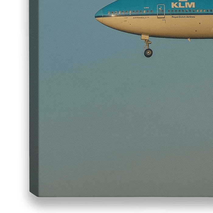 Koop de foto Landen KLM Boeing 747-400 jumbojet. van Jaap van den Berg als print op canvas, aluminium dibond, (ingelijste) fotoprint, behang en ArtFrame. Voor jou op maat geprint in Fine-Art kwaliteit.