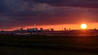 Deze foto is gemaakt net na zonsopkomst aan de kop van de Kaagbaan van luchthaven Schiphol op 2 mei 2015.