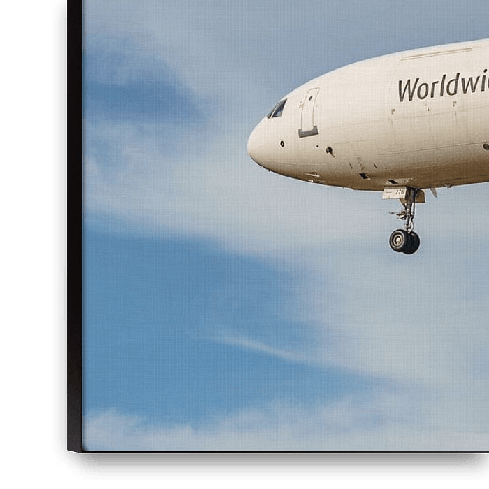Koop de foto Landende UPS McDonnell Douglas MD-11 vrachtvliegtuig. van Jaap van den Berg als print op canvas, aluminium dibond, (ingelijste) fotoprint, behang en ArtFrame. Voor jou op maat geprint in Fine-Art kwaliteit.