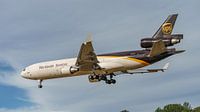 Landende UPS McDonnell Douglas MD-11 vrachtvliegtuig.