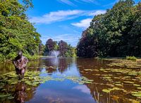 Landgoed De Paauw te Wassenaar, nabij Raadhuislaan met standbeeld "Baadster" van Carla Rutgers op de voorgrond.