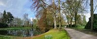 Grote panoramafoto van landgoed Gooilust in 's-Graveland, gemeente Wijdemeren. Gooilust is een van de 's-Gravelandse Buitenplaatsen van Natuurmonumenten. Deze foto laat de centrale vijver zien met daarachter het huis Gooilust waar onder meer het regiokantoor van Natuurmonumenten is gevestigd.