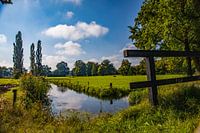 Een boeren kikkersloot op het Landgoed Twickel in Twente. Omgeven door het groen van de weilanden afgezoomd met een bosrand.