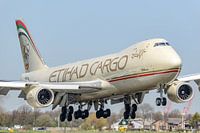 Landing Boeing 747-8 in Etihad Cargo livery.