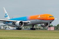 Landing KLM Boeing 777-300 passagiersvliegtuig.
