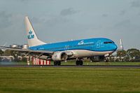 Deze KLM Boeing 737-800 is geland op de Polderbaan van luchthaven Schiphol.