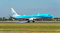 Deze KLM Boeing 737-800 is geland op de Polderbaan van luchthaven Schiphol.