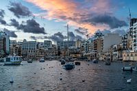 Saint Julian, Malta - 01 07 2022: Landscape view over the bay and marina at the seaside