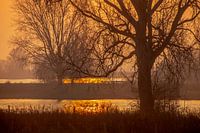 Landschap, fotografie horizontaal van een zonsondergang boven de Maas gezien vanaf de dijk bij Maren-Kessel op een koude voorjaarsdag.