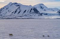 De IJsplaat met de besneeuwde berg is al geweldig om te zien. Maar moeder ijsbeer met haar 2 welpen maakt het plaatje meer dan af!