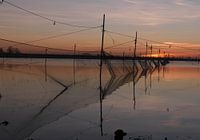 Een sfeervolle opname van het Veerse meer op een vrijwel windstille avond met vlakwater tijdens zonsondergang geeft reflecties in het water.