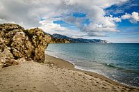 Landschap Zandstrand en Bergen aan de Costa del Sol in Andalusië Spanje