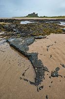 Landschap aan de kust in Oost Engeland met in de achtergrond kasteel Bamburgh