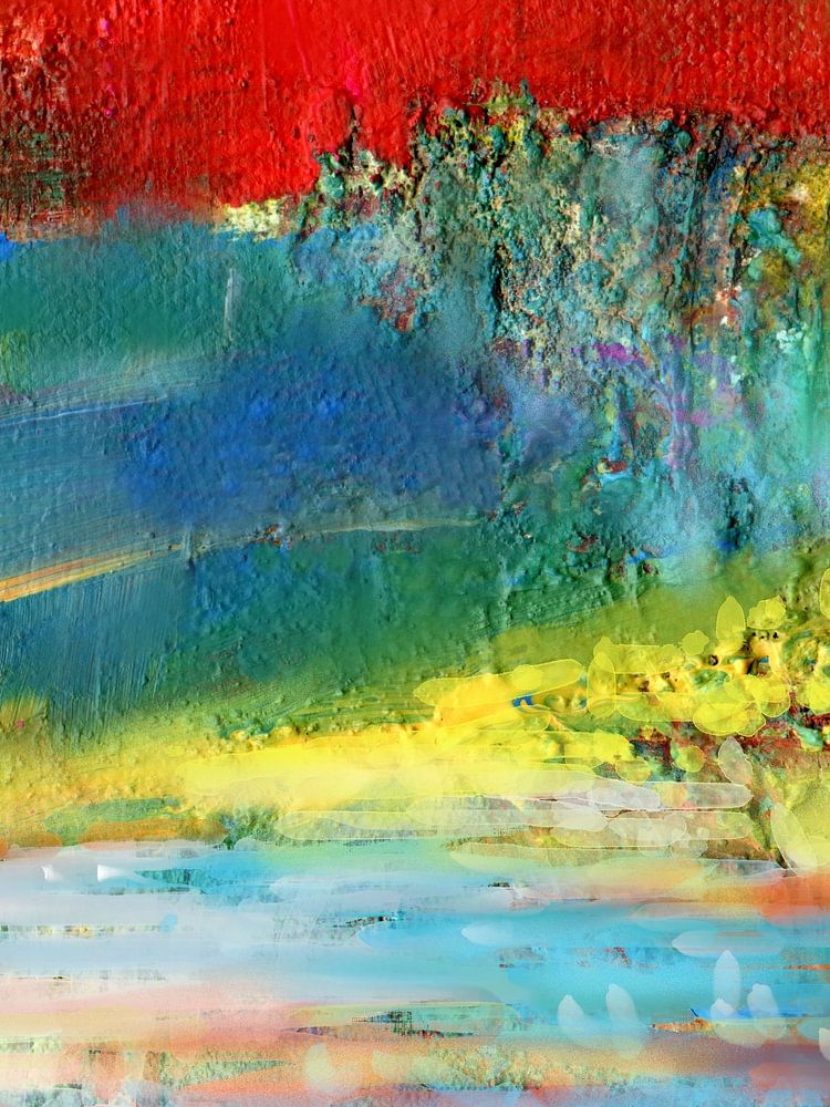 Landschap met bloemen in vrolijke kleuren...frisse, levendige kleuren brengen de zomer expressief aan de muur!