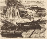 Lithografie van Johan Otto Hanrath (Amsterdam, Holland, Nederland, 8 april 1882 - Groesbeek, Gelderland, 13 september 1944). De maker was een Nederlandse kunstenaar. Hij was een van de oprichters van kunstenaarsvereniging De Brug (1926) en werkte in die tijd in de stijl van de nieuwe zakelijkheid. Tevens was hij lid van de De Onafhankelijken, Sint Lucas en 'Arti'. Onder het pseudoniem Maximnoff schreef hij ook enkele toneelstukken.