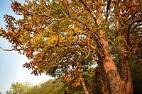 het mooie herfstlicht straalt over onze kastanjeboom