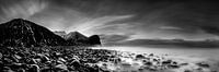 Zwart-wit Noors landschap.