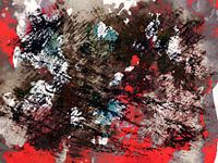 Een Scandinavisch expressionistisch abstract schilderij geheel uitgevoerd in warme, aardse en neutrale kleuren met een toefje rood.