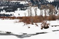 Landschap van Soda Butte Creek in Yellowstone Nationaal Park in de winter