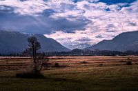 Landschap in de Murnauer Moos met uitzicht op de Alpen