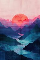 Landschap kleurrijk - Landschap abstract werk. Moderne Japandi stijl.