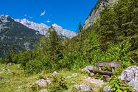 Koop dit landschapskunstwerk Landschap met bankje in Berchtesgadener Land van Rico Ködder op canvas, aluminium dibond, (ingelijste) fotoprint, behang en ArtFrame, op maat geprint in Fine-Art kwaliteit.