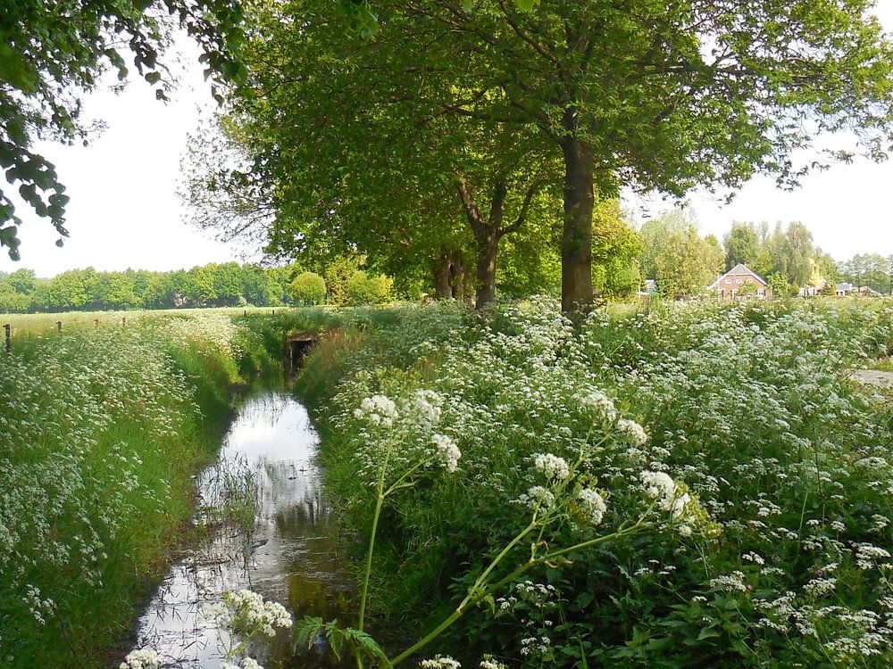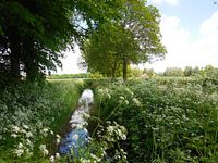 Achterhoeks landschap met beekje , bomen en bloemen in het voorjaar