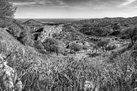 Wit bergdorp Frigiliana in Andalusië aan de Costa del Sol in zwart-wit.