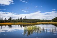 De Schwarze Lacke op de Gerzkopf weerspiegelt de blauwe lucht met witte wolken.