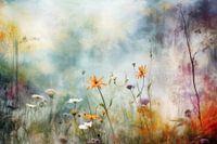 Modern en abstract landschap, overgang van zomer naar herfst. Indian summer. Kies zelf het formaat en het materiaal bij deze blikvanger en maak het werk helemaal passend voor jouw interieur.