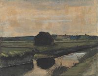 Landschap met een Turfstapel en Boerderijen, Vincent van Gogh, 1883