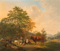 Landschap met herder, bulleman en vee, Pieter Gerardus van Os