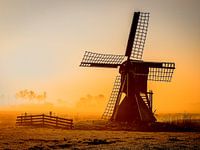 De zon kwam net op en de nevel was aan het optrekken, de molen kwam prachtig in het licht te staan, het hek moest erbij om een mooie compositie te verkrijgen.