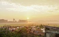 Landschap in Zuid-Holland met grazende schapen bij een zonsopgang.