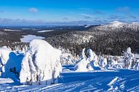 Landschap met sneeuw en bomen in de winter in Ruka, Finland.