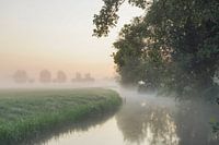 Een prachtig begin van de dag met nevel, zon en dauw. De zon brandt langzaam de nevel weg en de temperatuur begint te stijgen. Een kwartier na zo'n moment als dit is het net of het sprookje van zojuist er nooit is geweest.