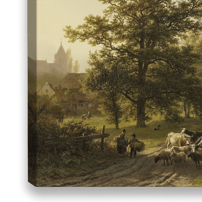 Koop Landschap met watermolen en veedrijvende boeren, Barend Cornelis Koekkoek als reproductie op canvas, aluminium dibond, (ingelijste) fotoprint, behang en ArtFrame, op maat geprint in Fine-Art kwaliteit.