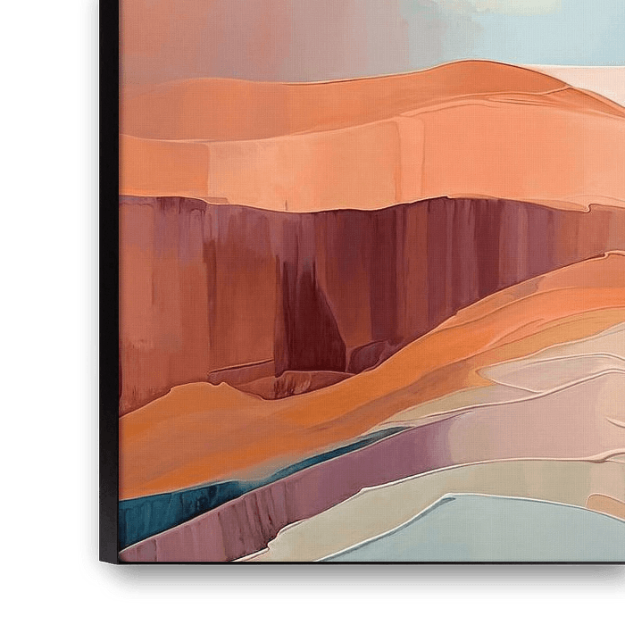 Een werk dat een modern abstract landschap weergeeft, vol dynamiek en levendige kleuren. Het design combineert speelse vormen met subtiele kleurnuances, waardoor een organische sfeer ontstaat die zowel eigentijds als rustgevend is. De variatie in tinten en texturen creëert diepte, wat het werk een bijna driedimensionale uitstraling geeft. Dit werk past perfect bij moderne interieurs en geeft een artistieke touch aan elke ruimte. Met deze visuele compositie kun je een gevoel van balans en natuur in je huis brengen, ideaal voor liefhebbers van abstracte kunst en landschappen.