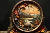 Uniek kunstwerk: Een klassiek wijnvat met een modern landschap erop geschilderd. Creëer een blikvanger in je interieur met dit unieke stuk.