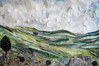 Landschap van krantenpapier en acrylverf