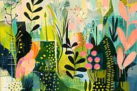 Landschap - Landschap schilderij. Botanische stijl..