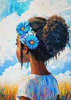 Landschap - Meisje met bloemen. Panorama uitzicht meisje met bloemen. Impressionisme portret schilderij van vrouw bij een uitzicht op een landschap.