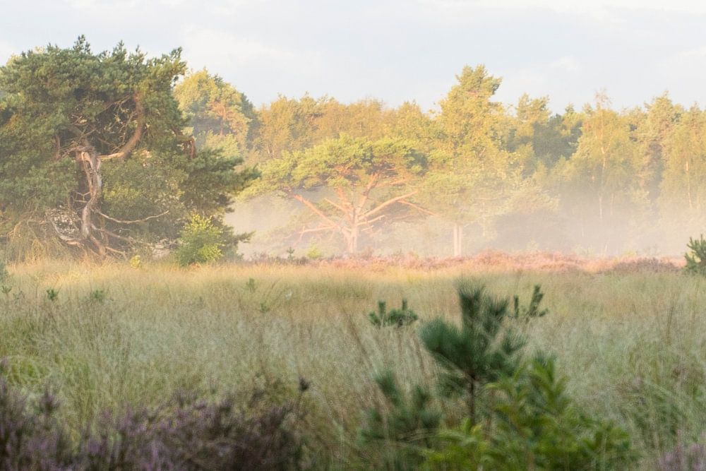 In het bos van de Woensdrechte hei is veel te zien. Ook veel spinnenwebben in de ochtend.