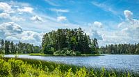 Eiland met klein bos in Zweeds merenlandschap