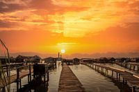 De foto toont deze huizen in de ondergaande zon, de pieren of steigers moeten het beeld inleiden. de kleuren en de unieke avondsfeer maken het totaalplaatje compleet. Ik ging speciaal naar deze plek in de avonduren om deze sfeer precies zo vast te leggen.