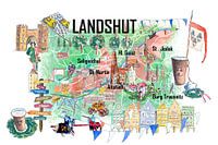 Landshut Geïllustreerde Kaart met Straten en Toeristische Hoogtepunten
